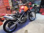 Been tinkering with the old KLE twin as its been sat neglected for some years. Wiped the muck away and decided it wasn't quite duallie enough so most of the road stuff is gone, new set of conti attacks front and rear as I had worn the edges off lol. Gone is the headlamps and fairings and front and rear mudguards and with it a shed load of weight. The exhaust weighs a ton lol.